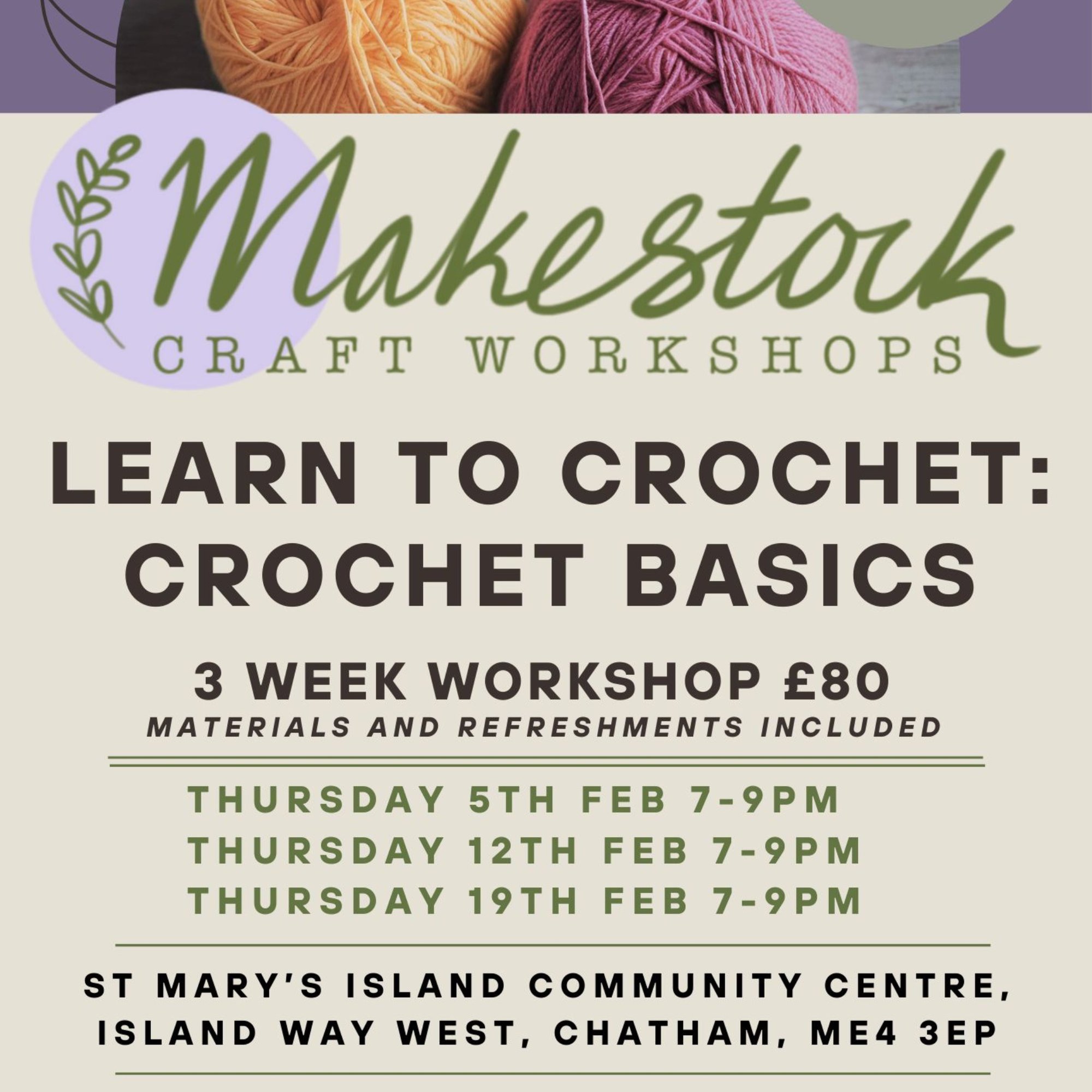 Over 3 weeks we will learn a selection of basic crochet stitches including chain stitch, double crochet, half treble crochet and treble crochet (time and pace permitting). Learn how to start and finish off and what do if and when you make a mistake. We will also cover some basic information about materials/tools and reading patterns. We will make swatches that we can label and refer back to and then start off making a washcloth which can be completed at home using your new skills.