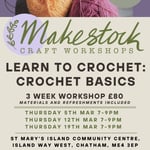 Over 3 weeks we will learn a selection of basic crochet stitches including chain stitch, double crochet, half treble crochet and treble crochet (time and pace permitting). Learn how to start and finish off and what do if and when you make a mistake. We will also cover some basic information about materials/tools and reading patterns. We will make swatches that we can label and refer back to and then start off making a washcloth which can be completed at home using your new skills.